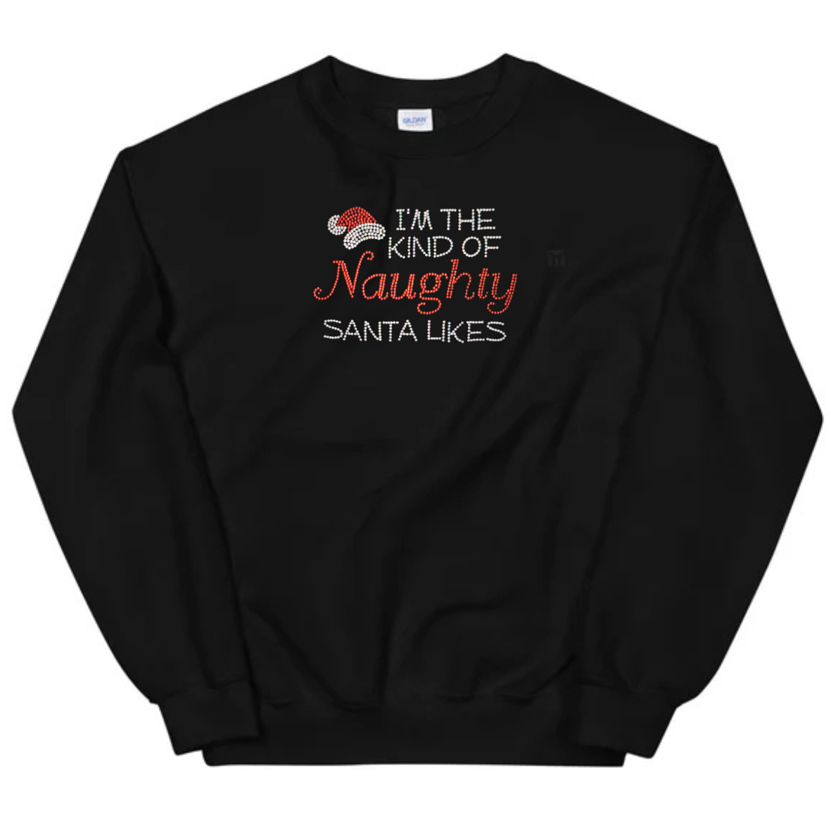 Embroidered unisex sweater or hoodie with design "Kind of naughty".