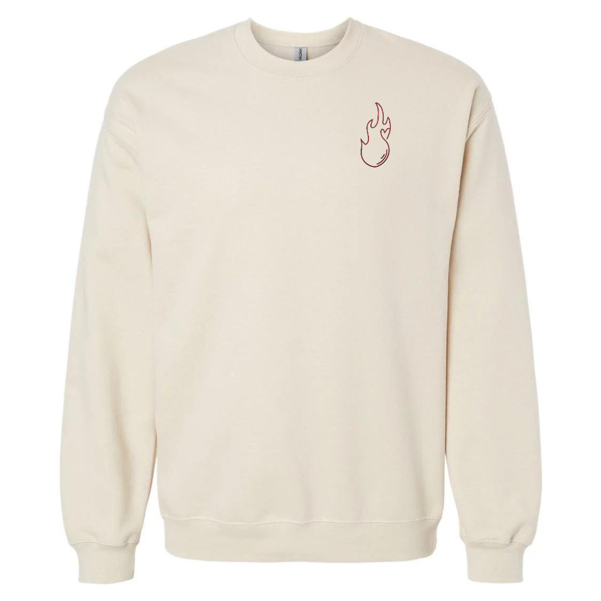 Izšūts unisex džemperis vai hūdijs ar dizainu "Sirds liesmās".