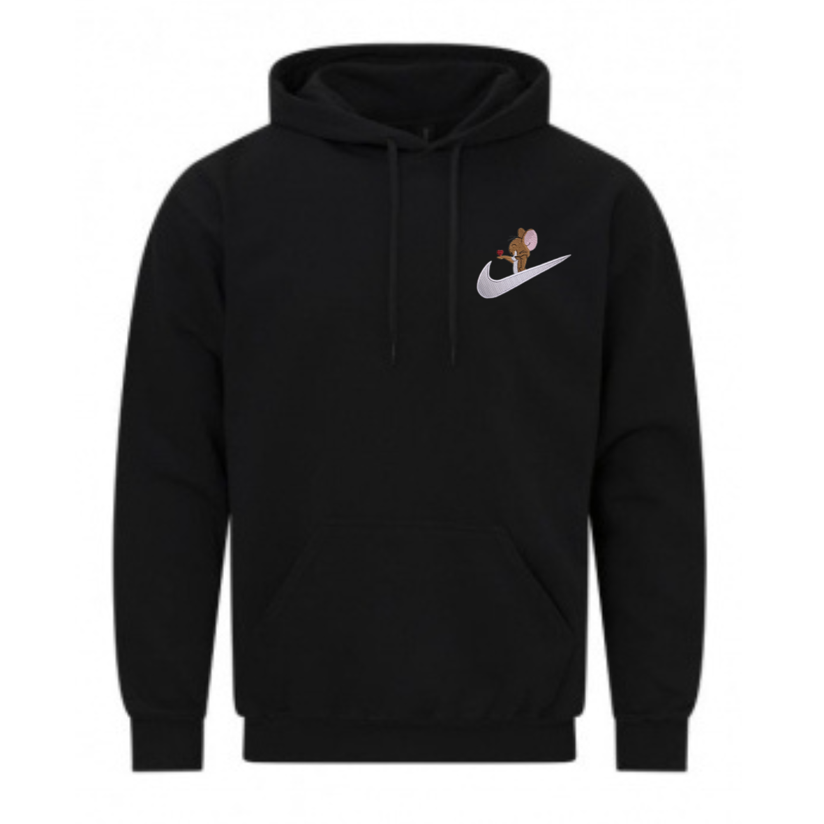 Unisex hūdijs ar nolaistiem pleciem. Izšūts Džerija dizains.