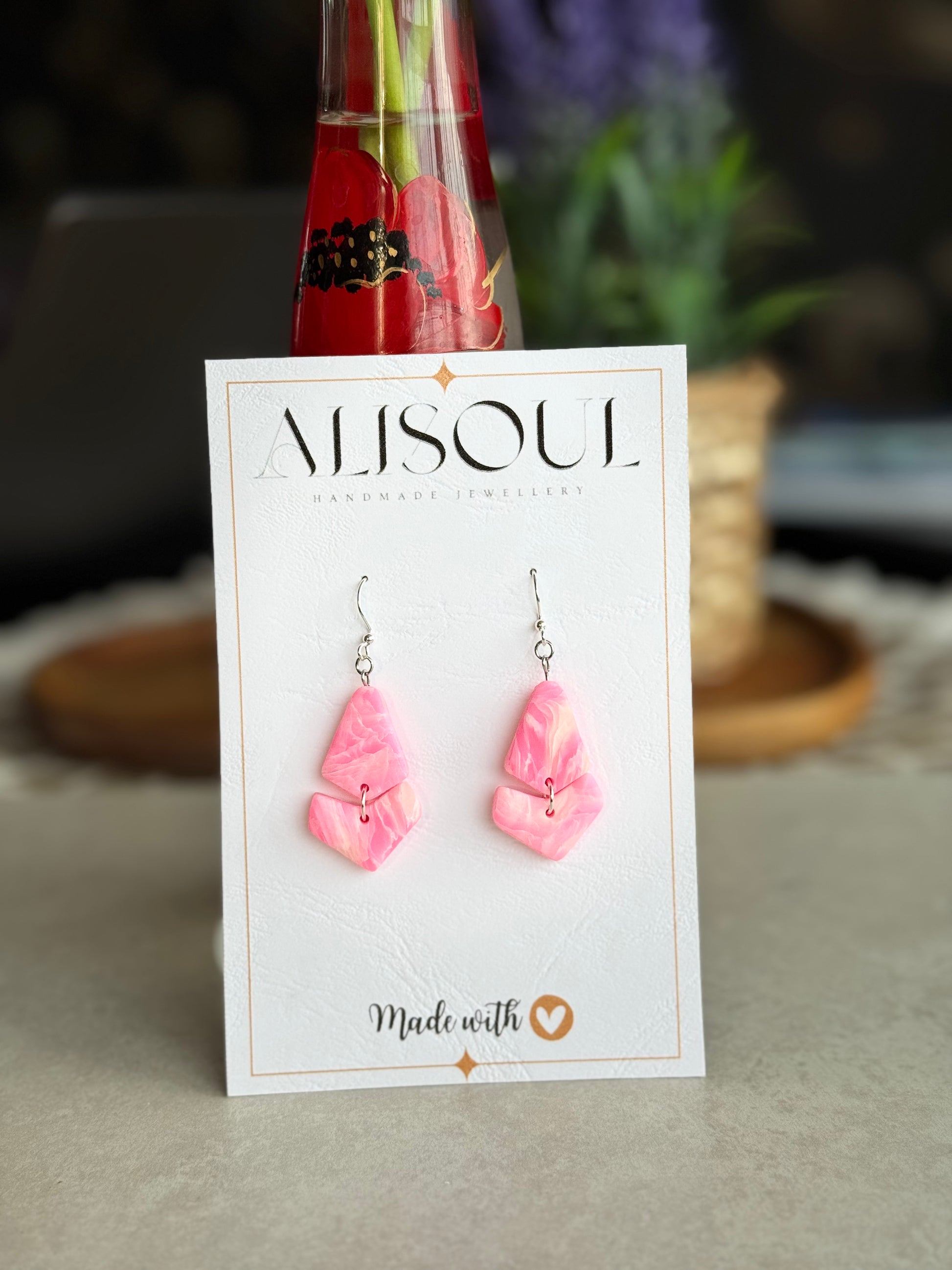 Lūdzu, ņemiet vērā, ka šie ir roku darbs, un var būt nelielas atšķirības no attēlos redzamajiem. Var būt nelielas nepilnības, piemēram, ļoti mazi gaisa burbuļi vai sīkas pūku daļiņas. Esmu centusies pēc iespējas labāk atveidot auskaru krāsu un kvalitāti.