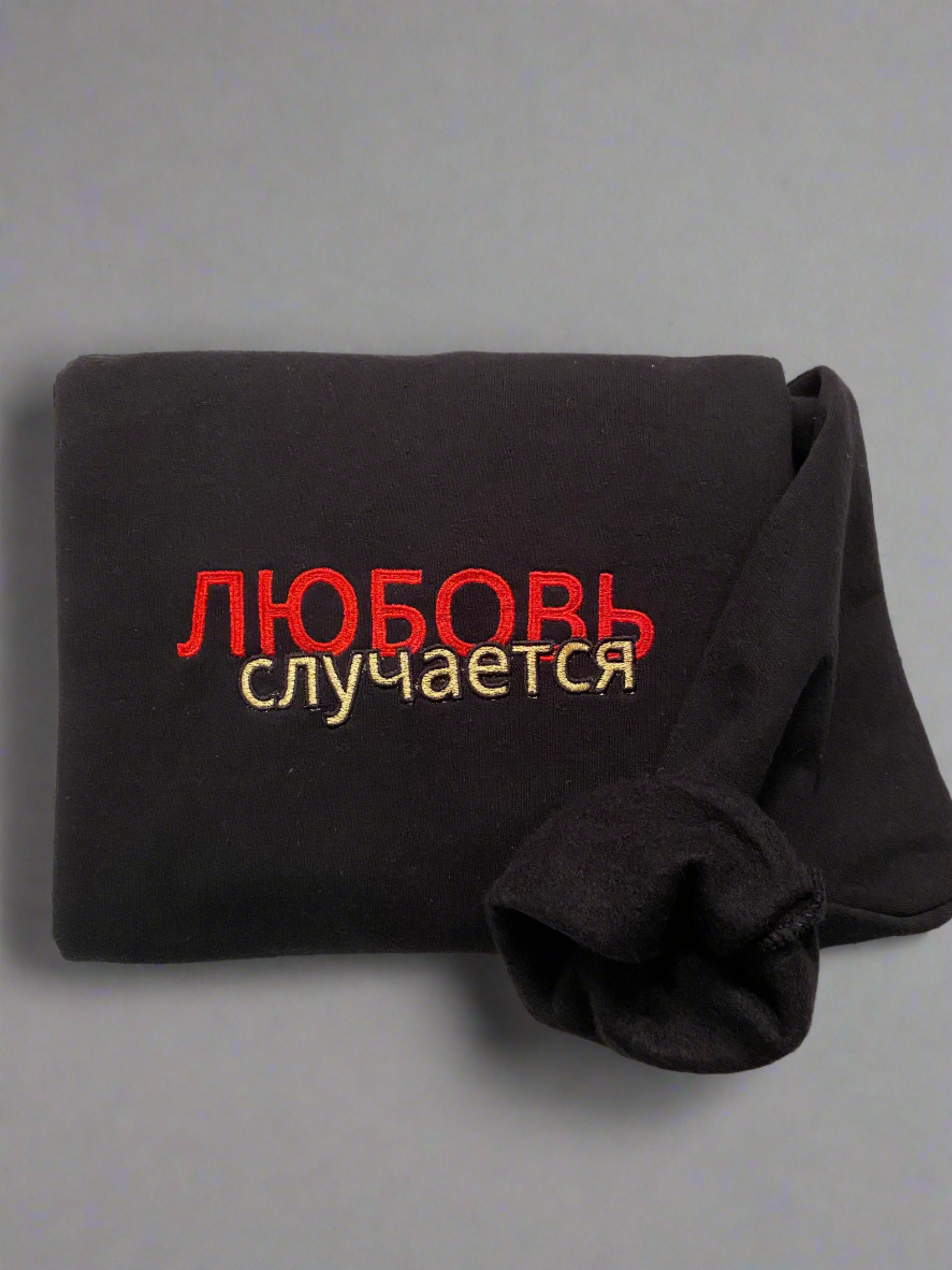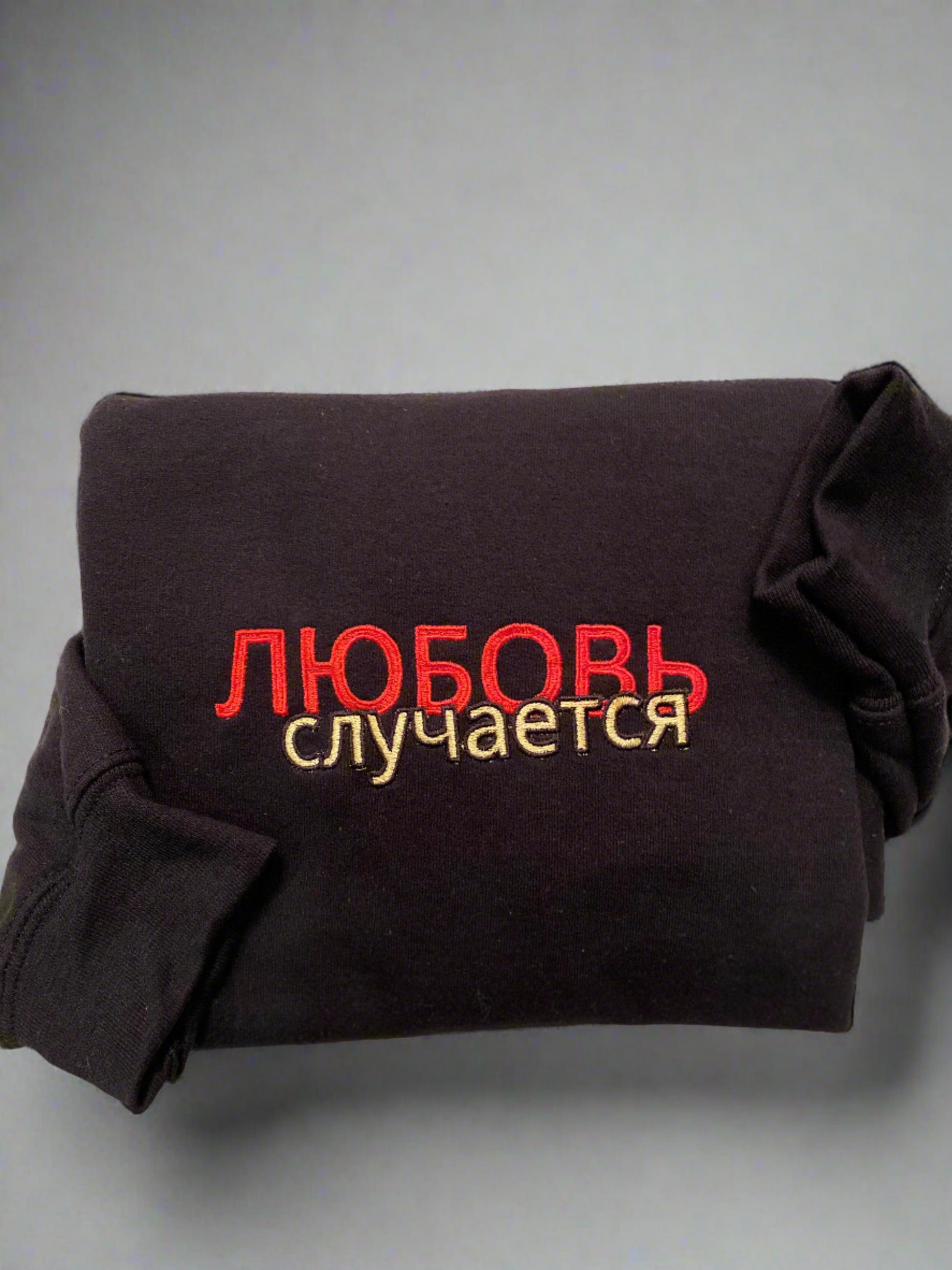 Теплый свитер унисекс бренда Gildan. Вышитый текст «ЛЮБОВЬ СЛУЧАЕТСЯ».
